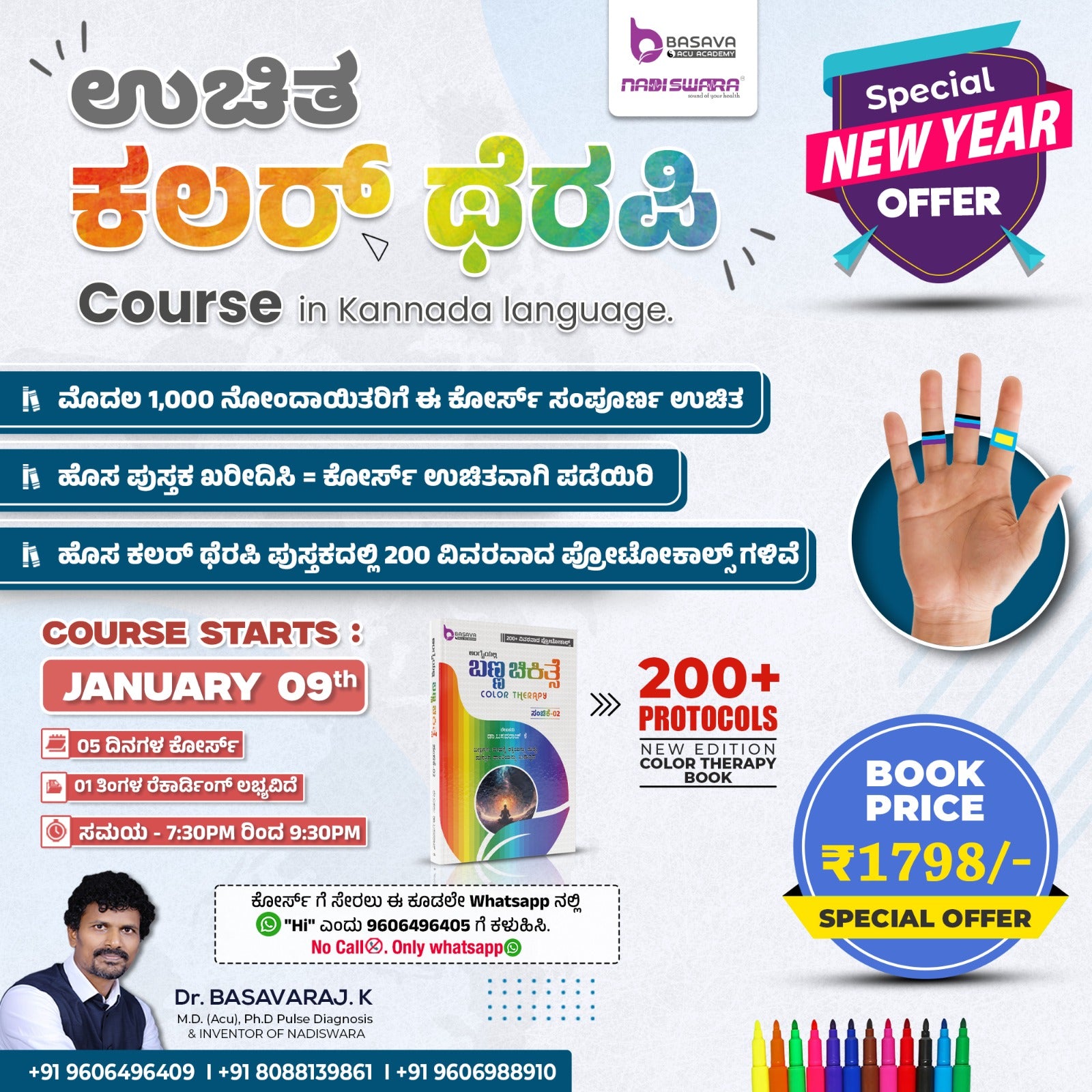ಬಣ್ಣ ಚಿಕಿತ್ಸೆಯಲ್ಲಿ ಇತ್ತೀಚಿನ ಪ್ರಗತಿಗಳನ್ನು ಒಳಗೊಂಡ ಈ ಸಮಗ್ರ ಮಾರ್ಗದರ್ಶಿ, 200ಕ್ಕೂ ಹೆಚ್ಚು ಹೊಸದಾಗಿ ಅಭಿವೃದ್ಧಿಪಡಿಸಿದ ಪ್ರೋಟೋಕಾಲ್ಗಳನ್ನು ಒಳಗೊಂಡಿದೆ. ಆವೃತ್ತಿ 2ರಲ್ಲಿ ಕ್ರೊಮೋಥೆರಪಿಯ ಸುಧಾರಿತ ವಿಧಾನಗಳು ಮತ್ತು ಸಮಕಾಲೀನ ಅನ್ವಯಿಕೆಗಳನ್ನು ಪರಿಚಯಿಸಲಾಗಿದ್ದು, ಸಾಕ್ಷ್ಯಾಧಾರಿತ ಬಣ್ಣ ಚಿಕಿತ್ಸಾ ವಿಧಾನಗಳನ್ನು ಹುಡುಕುತ್ತಿರುವ ಚಿಕಿತ್ಸಕರಿಗಾಗಿ ವಿನ್ಯಾಸಗೊಳಿಸಲಾಗಿದೆ. ಈ ತಜ್ಞ ಸಂಪನ್ಮೂಲವು ಪಾರಂಪರಿಕ ಬಣ್ಣ ಚಿಕಿತ್ಸಾ ತತ್ತ್ವಗಳನ್ನು ಆಧುನಿಕ ಕ್ಲಿನಿಕಲ್ ಒಳನೋಟಗಳೊಂದಿಗೆ ಸಂಯೋಜಿಸಿ, ವಿವಿಧ ಆರೋಗ್ಯ ಸ್ಥಿತಿಗಳು ಮತ್ತು ಸಮಗ್ರ ಸುಖಾಸುಖ್ಯ ಗುರಿಗಳಿಗಾಗಿ ವಿವರವಾದ ಪ್ರೋಟೋಕಾಲ್ಗಳನ್ನು ಒದಗಿಸುತ್ತದೆ. ಅತ್ಯಾಧುನಿಕ ಬಣ್ಣ ಚಿಕಿತ್ಸಾ ತಂತ್ರಗಳೊಂದಿಗೆ ತಮ್ಮ ಅಭ್ಯಾಸವನ್ನು ವಿಸ್ತರಿಸಿಕೊಳ್ಳಲು ಬಯಸುವ ಥೆರಪಿಸ್ಟ್ಗಳು, ವಿದ್ಯಾರ್ಥಿಗಳು ಮತ್ತು ಆರೋಗ್ಯ ವೃತ್ತಿಪರರಿಗೆ ಇದು ಅತ್ಯಂತ ಸೂಕ್ತವಾಗಿದೆ.